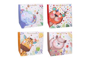 Dárková taška o velikosti L 38x38x20 cm Dětská. 4 varianty zvířátek: tygr, slon, ovečka a žirafa.