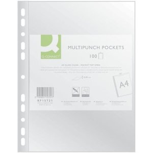 Závěsné polypropyleové prospektové obaly Q-Connect, určené pro dokumenty formátu A4 Typ U - obal je otevřený z horní strany Europerforace Materiál: polypropylen Tloušťka materiálu: 150 mic Formát: A4 …