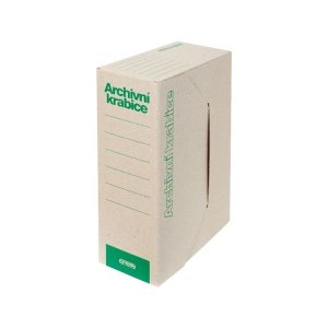 Hnědá pevná krabice pro uložení volně ložených spisů A4 nebo spisů v rychlovazačích či v deskách Vyrobeno z kvalitní třívrstvé vlnité lepenky Víko se odklápí shora Skupinová archivační krabice má zelený …