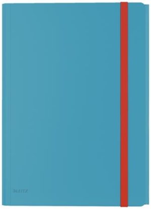 Tříklopá složka se zajišťovcí gumičkou přes rohy, která zabraňuje vypadávání dokumentů.