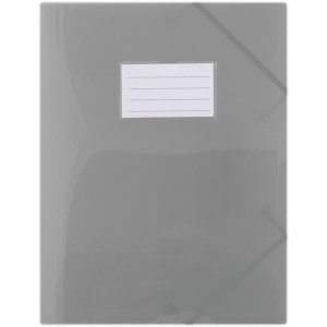 Plastové desky se třemi chlopněmi a gumičkou a kapsičkou na vizitku Vyrobeny z průhledného PP materiálu s embosovaným vzorem rastru Roztažitelný hřbet až 3,5 cm Tloušťka materiálu 0,5 mm Rozměry (složené …