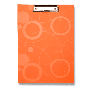 Plastová psací podložka v moderních pastelových barvách, rozevírací s kovovým klipem.