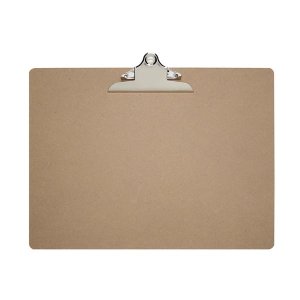 Psací podložka s kovovým klipem, vyrobena z extra pevné lepenky.