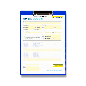 Psací podložka s klipem Velmi pevný materiál Materiál: GPPS Tloušťka materiálu: 2,5 mm Formát: A4 Barva: modrá