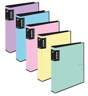 Pořadač v moderních pastelových barvách, s pákovou mechanikou, na zakládání dokumentů ve formátu A4, prsto a rado kroužek.