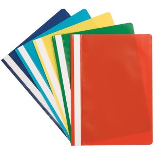 Plastové rychlovazače naší privátní značky Q-Connect, kvalitní lehké složky pro uspořádání perforovaných dokumentů s průhlednou přední stranou a neprůhlednou barevnou zadní stranou Materiál přední strany: …