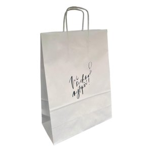 Dárková taška v přírodní barvě je kvalitní, vyrobená z pevnějšího papíru.