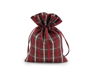 Dárkový pytlík s lurexem a károvaným vzorem má kvalitní provedení, působí elegantně a luxusně.