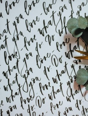 Be Nice EKO balicí papír písmo s citátem do what you love - love what you do na bílém papíru.