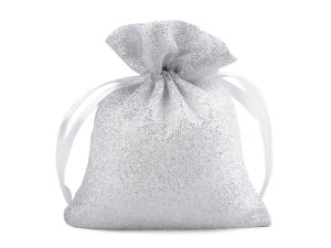 Dárkový organzový pytlíček je celý posetý glitry, díky kterým se poutavě třpytí.