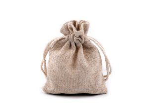 Malý lněný pytlík se dá jednoduše uzavřít pomocí dvou bavlněných stahovacích šňůrek.