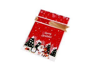 Stahovací sáčky s vánočními motivy oceníte na [na dárkové balení různých balených pochutin, ale také třeba kosmetiky, svíček a jiných maličkostí.] Stahují se pomocí saténové stuhy.
