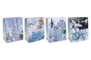Dárková taška o velikosti L 31x42x12 cm VÁNOCE. 4 varianty: zelená, modrá, stříbrná, červená.