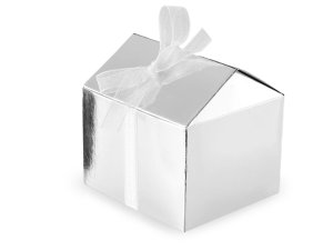 Dárková krabička domeček s lesklým metalickým povrchem potěší každého obdarovaného.