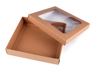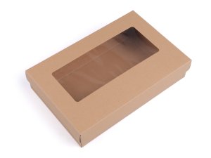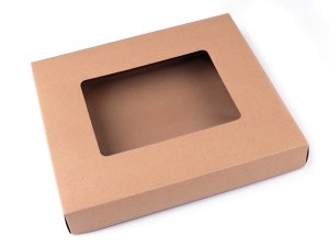 Papírová krabice natural má výřez ve víku s průhlednou fólií.