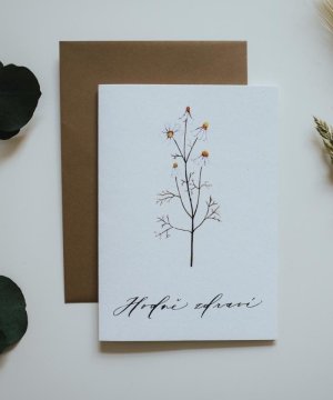 Be Nice ekologické přání Hodně štěstí a zdraví - s originálním designem české bylinky heřmánek.