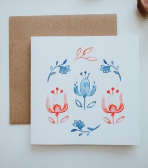 Be Nice EKO Blahopřání k narození miminka - holčička - na recyklovaném papíru s českým folklórním designem.