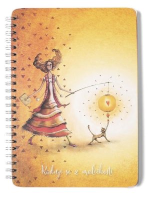 Edice Duhová kočka, formát A5, linkovaný, 50 listů, kroužková TWIN WIRE vazba, speciální knižní papír (Holmen book), motiv Raduji se z maličkostí. Poznámkové bloky z edice Duhová …