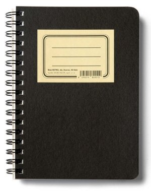 Zápisník s měkkou, ve hřbetu šitou vazbou v kartonových deskách, obepnutý pružnou páskou proti samovolnému otevírání.