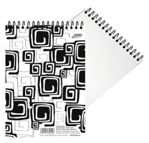 Výrazný blok A5 v černobílém designu obsahuje 50 linkovaných listů. Designově nepřehlédnutelný a zajímavý černobílý poznámkový blok s boční plastovou spirálou.