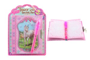 Krásný zápisník pro holčičky. Balení obsahuje speciální pero, díky němuž můžete napsat cokoliv, ale vše bude vidět pouze pod speciálním světlem na konci pera.