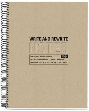 Ekologicky šetrný poznámkový blok z recyklovaného papíru v pevném kartonovém obalu s kroužkovou vazbou.