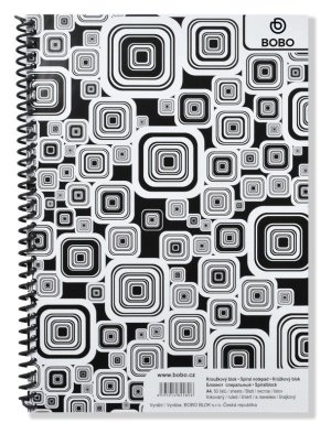 Výrazný blok A4 v černobílém designu obsahuje 50 linkovaných listů. br brDesignově nepřehlédnutelný a zajímavý černobílý poznámkový blok s boční plastovou spirálou.