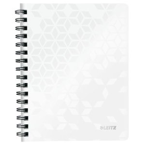 Trendy poznámkový blok v transparentních deskách z polypropylenu s kroužkovou vazbou.