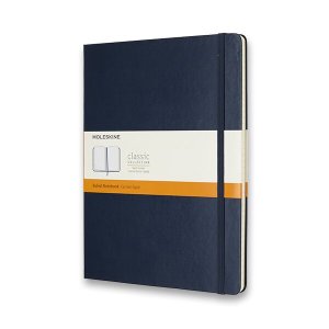 Více stran pro delší příběhy. ,Zápisník s pevnou, ve hřbetu šitou vazbou v kartonových deskách, obepnutý pružnou páskou proti samovolnému otevírání.