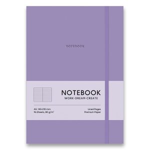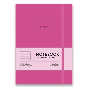 Poznámkový sešit A5 - lepený a linkovaný - obsahuje 80 linkovaných listů v krémové barvě.