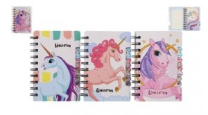 Kroužkový zápisník s motivy jednorožce.