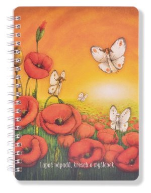Edice Duhová kočka, formát B6, linkovaný, 50 listů, kroužková TWIN WIRE vazba, speciální knižní papír (Holmen book), motiv Vlčí máky. br brPoznámkové bloky z edice Duhová kočka vznikly spoluprací společnosti …