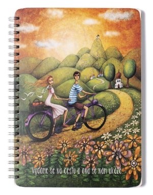 Spirálový blok v nestárnoucím designu Alfonse Muchy – linkovaný zápisník můžete použít jako deník, psát do něj hluboké myšlenky nebo pracovní poznámky.