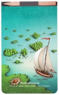 Formát 150 x 90 mm, čistý (nelinkovaný), lepený, tužka v bloku, magnet na zadní straně, speciální knižní papír (Holmen book), motiv Rozhodnout se. Poznámkový blok s tužkou a magnetem …