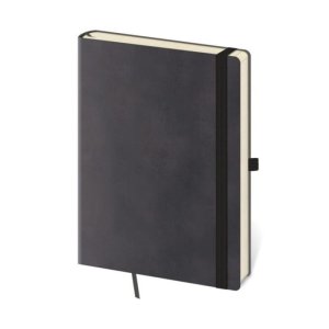 Praktický a lehký tečkovaný notes v klasické šedé barvě má povrch s hrubší strukturou, na který si můžete nechat vyrazit logo společnosti.