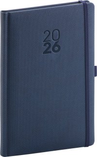 Plánovací kapesní diář Balakon 2026 v tmavě modrém provedení, doplněný o stříbrný letopočet.