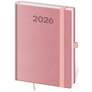 Týdenní diář pro rok 2026 z matného soft touch lamina Formát A6, rozměr 98 x 148 x 10 mm Celkem 128 stran Info strany obsahují: osobní údaje, plánovací kalendář 2026, křestní jména, důležitá tel. čísla, …