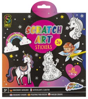 Vyškrabávací samolepky XXL 5 ks – balení obsahuje 5 vyškrabávacích samolepek a škrabátka.