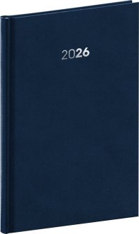 Plánovací týdenní diář Balakon 2026 v tmavě modrém provedení, doplněný o stříbrný letopočet.