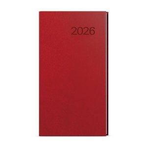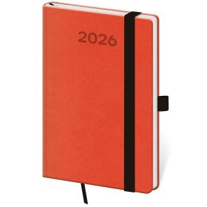 Denní diář Tomy 2026 v hnědo-červené barvě.