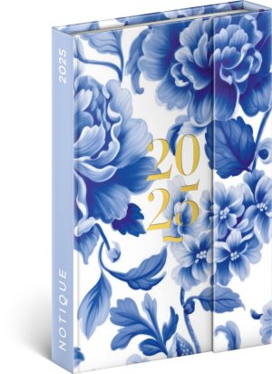 Diář 2025: Modrý květ - týdenní, magnetický, 11 × 16 cm