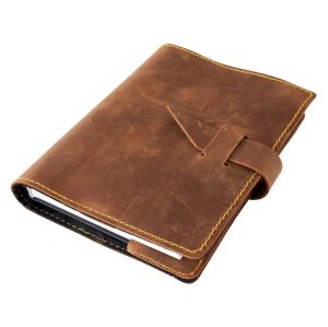 K nerozeznání od skutečné kůže, navíc doplněn gumičkou přes hřbet a ořízkou bloku ve stejné barvě.