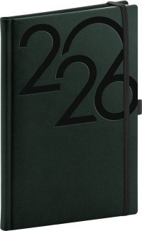 Plánovací týdenní diář Balakon 2026 v zeleném provedení, doplněný o stříbrný letopočet.