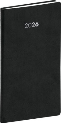 Plánovací kapesní diář Balakon 2026 v černém provedení, doplněný o stříbrný letopočet.