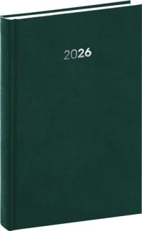 Plánovací denní diář Balakon 2026 v zeleném provedení, doplněný o stříbrný letopočet.