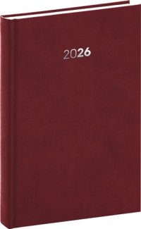 Plánovací denní diář Balakon 2026 v provedení bordó, doplněný o stříbrný letopočet.