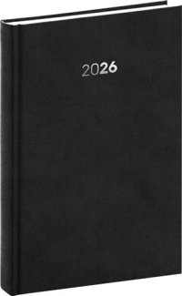 Plánovací denní diář Balakon 2026 v černém provedení, doplněný o stříbrný letopočet.