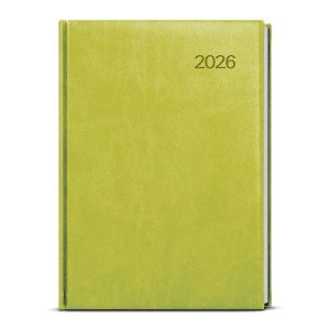 Moderní diář v měkké ohebné vazbě s kulatou příčnou gumičkou přes hřbet.