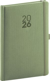 Týdenní diář Diamante 2026 v olivové barvě.