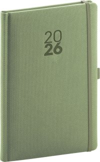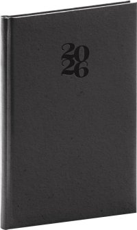 Týdenní diář pro rok 2026 z matného soft touch lamina Formát A5, rozměr 155 x 207 x12 mm Celkem 128 stran Info strany obsahují: osobní údaje, plánovací kalendář 2026, přehledný kalendář 2026/2027, křestní …